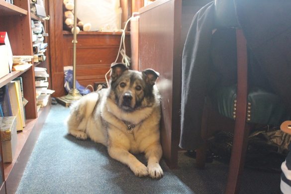 Bonnie Culver, director of the Maslow Family Graduate Program in Creative Writing at Wilkes, says that she has had Norwegian elk hounds “for all of my adult life.” You can see her and her latest elk hound, Brody, out and about on campus. Inside the creative writing office in Cox Hall, Brody can be found at the marble entrance waiting for guests.