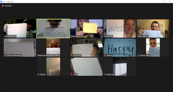 Socialize the Wilkes WAE: Wilkes Adventure Education (aka WAE) usually gets people up and moving with icebreakers and other activities. In the online orientation version, students participated in a variety of activities via Zoom breakout rooms. Students participated in a round of a game called hot seat, where students and E-mentors took turns asking each other any question they wished. They also played a version of Never Have I Ever and another game where players had to describe an image to group members using limited words who drew the image. (The winner was the person whose image came closest to the original.)