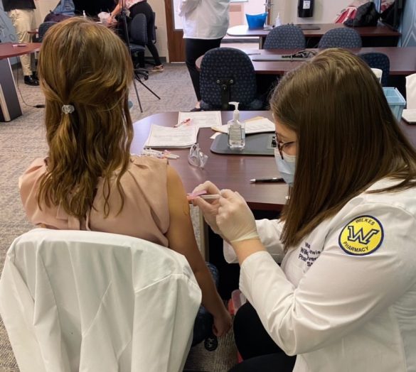 Training for pharmacy students includes 20 hours of certification training specifically in immunizations and vaccinate administration. While undergoing training, Wilkes students observed vaccination deployments while aiding in patient intake, preparing doses and scheduling and educating patients.