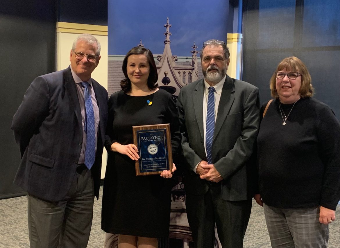 Natural gas and its role in Eastern European conflict was the theme of the presentation from Andreea Maierean, associate professor of political science, during the Wilkes University 2022 Paul A. O’Hop Final Word Lecture.