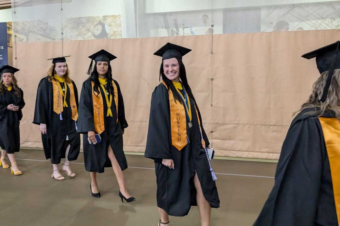 Andrew Miller, professor of political science and chair of the Faculty Affairs Council, shared a greeting on behalf of the faculty. Susan V. Kalinay delivered the student address and received her master of business administration degree at the ceremony. Deborah Zbegner, dean of the College of Health and Education, delivered the commencement address.