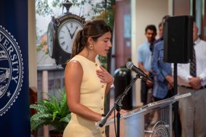 Deborah Zbegner, dean of the College of Health and Education, thanked Alley in her remarks and reinforced the power of education, noting the widespread impact of the generous gift. “Education shapes every other discipline and provides the foundation from which all is built,” she said. “It is a reminder that when we invest in education, we invest in our humanity and the promise of the future.”