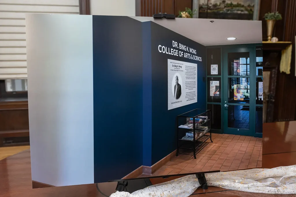 With 25 undergraduate majors and two graduate programs spread throughout multiple buildings on campus, guests gathered at Weckesser Hall for a glimpse of the signage that will commemorate Wong’s extraordinary generosity and the gift’s campus-wide impact.