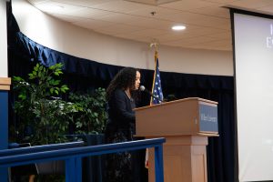 Noor Almeky, a member of the Multicultural Student Coalition, offered the invocation for the afternoon. Adrianna Aziz, a Bonner Leader and member of the Honors Program, led guests in singing of the National Anthem. Joshua Ermeus, a member of the Multicultural Student Coalition, sang the Black National Anthem, “Lift Every Voice and Sing” by James Weldon Johnson.