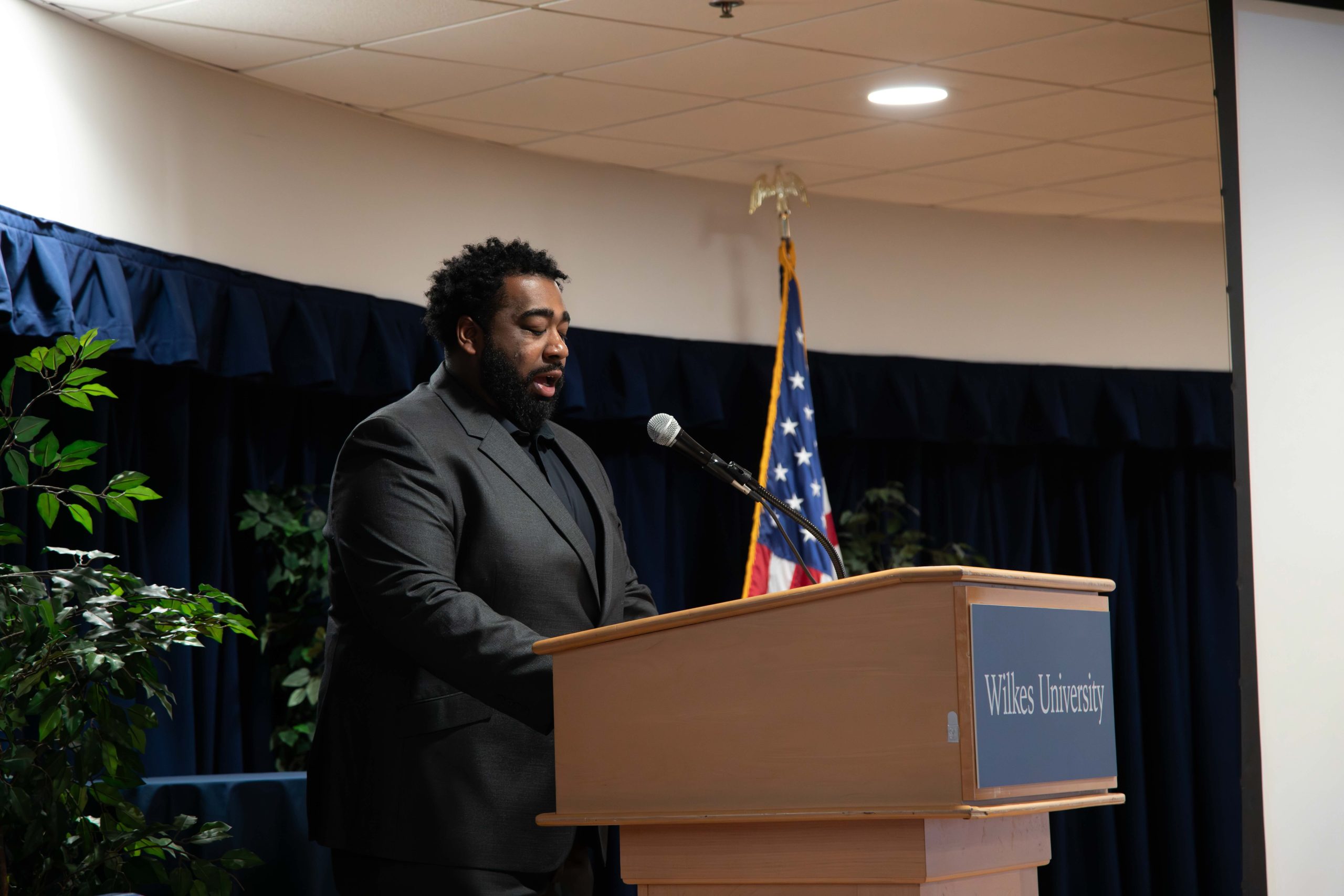 Following Harper’s remarks, Wilkes student and football player Elias Dixon-Gilbert shared an introduction of the keynote speaker, Darian Bryant.