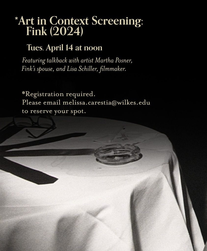 All events are free and open to the public. Reservations are required for the Art in Context Screening of Fink. Please RSVP to melissa.carestia@wilkes.edu.