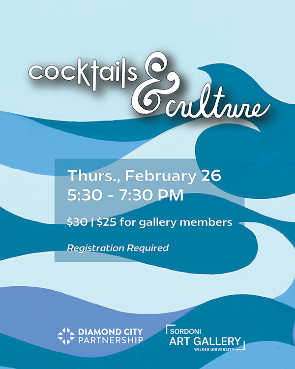 Diamond City Partnership and Sordoni Art Gallery are thrilled to announce that Cocktails & Culture is back! Join us to take a closer look at the current exhibition featuring a tour from the artist herself, Helen Zughaib. The night will be filled with Lebanese cuisine and live music. This is a popular event not to miss!