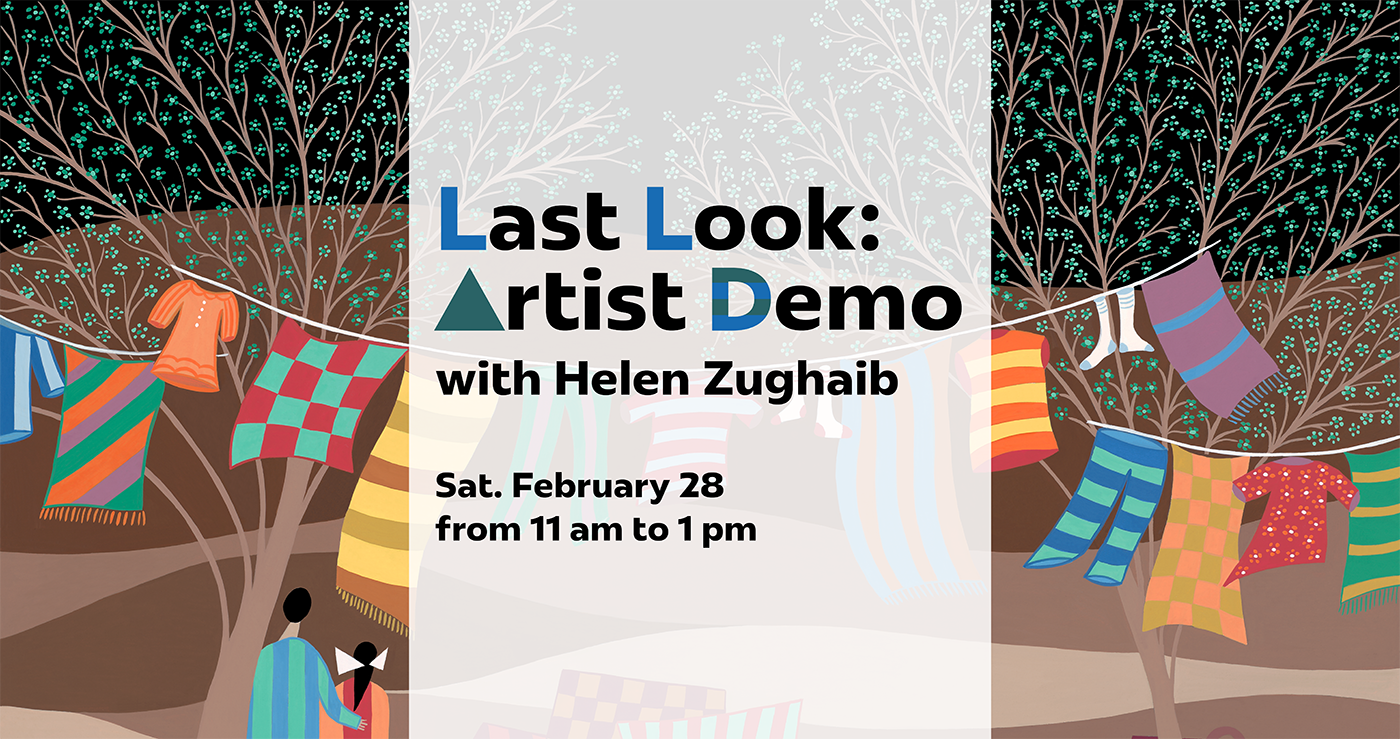 Our exhibition will wrap with a special Last Look: Artist Demo with Helen Zughaib. Zughaib will talk about her creative process and show her gouache painting techniques. Attendees will be able to try out techniques at our gouache station. Lite refreshments from The Burnt Norton will be served.